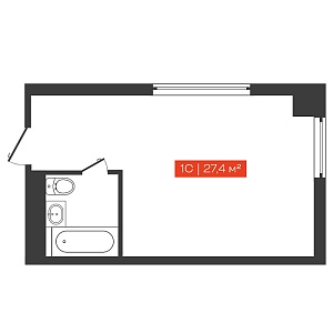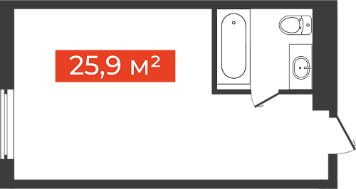 Однокомнатная студия, 25.9 м²