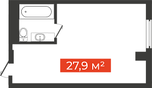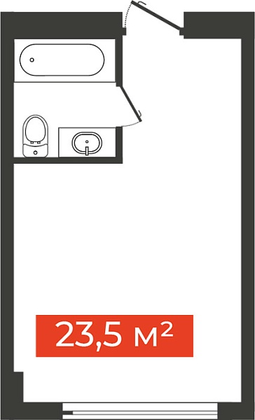 Однокомнатная студия, 23.5 м²