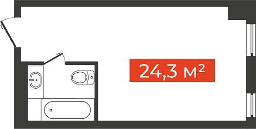 Однокомнатная студия, 24.3 м²