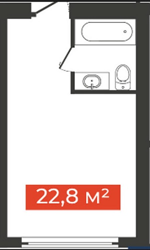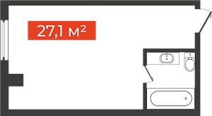 Однокомнатная студия, 29.2 м²