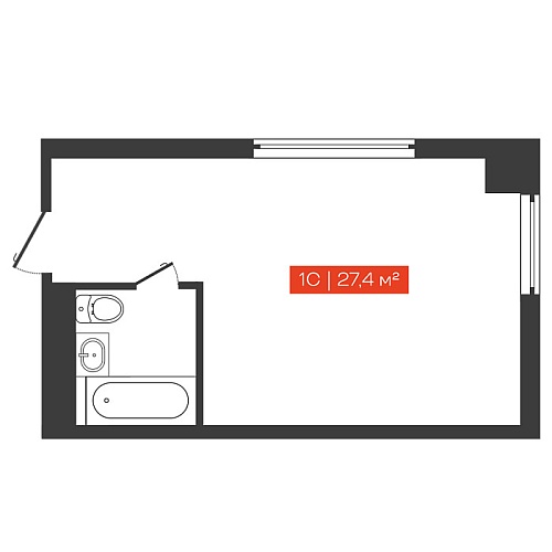 Однокомнатная студия, 27.4 м²