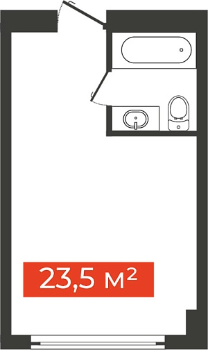 Однокомнатная студия, 25.7 м²