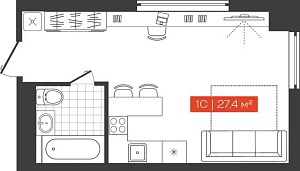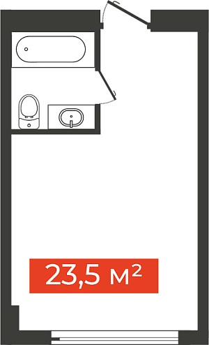 Однокомнатная студия, 28.9 м²