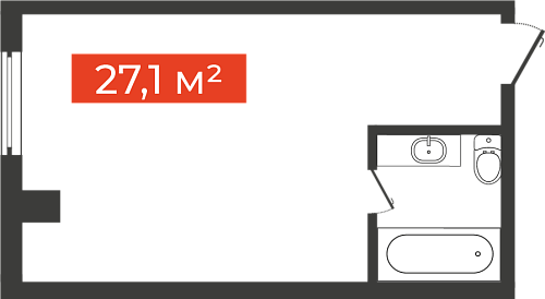 Однокомнатная студия, 27.1 м²